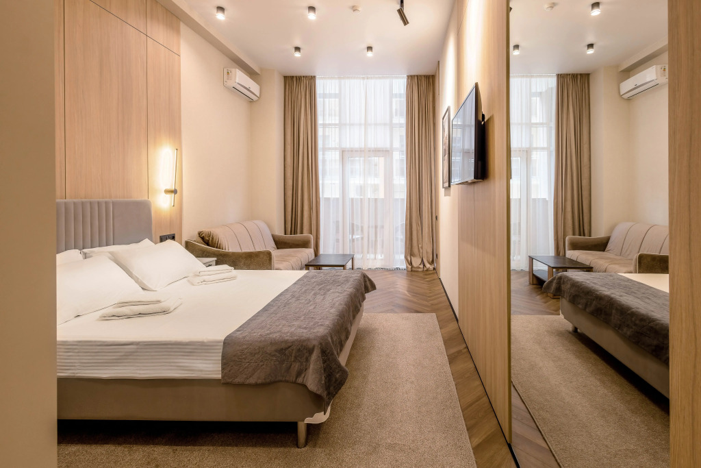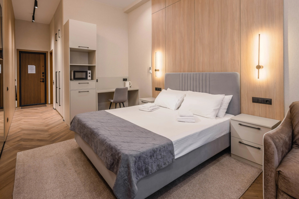 Вопрос: Где расположены апартаменты Светлана Парк ApartAmore? Ответ: Апартаменты Светлана Парк ApartAmore находятся в городе Сочи по адресу: улица Гагринская, д. 3/8. Это удобное расположение недалеко от центра города позволяет гостям быстро добраться до основных достопримечательностей и развлечений. Вопрос: Какие достопримечательности находятся рядом с апартаментами? Ответ: Рядом с апартаментами Светлана Парк ApartAmore находятся такие достопримечательности, как Пляж Цирк (адрес: ул. Черноморская, д. 2), пляж Солнечный (адрес: ул. Солнечная, д. 22) и Зимний театр (адрес: ул. Театральная, д. 2). Гости могут насладиться прогулками по живописным местам и отдохнуть на пляже. Вопрос: Какие услуги предоставляются в апартаментах? Ответ: В апартаментах Светлана Парк ApartAmore предоставляются следующие услуги: онлайн бронирование, возможность оплаты на месте или картой, поддержка, работа с юридическими лицами, заселение групп, отчётные документы и электронный документооборот.
